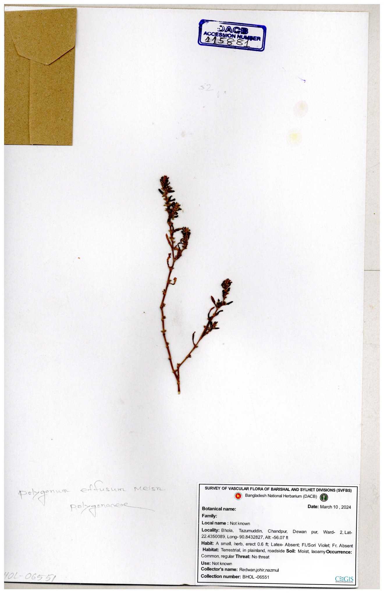 | 66116 | Polygonaceae | Polygonum flaccidum Meisn. | Horin ban | Krishna Thakur Chakma | KTC-235 30-11--0001 |