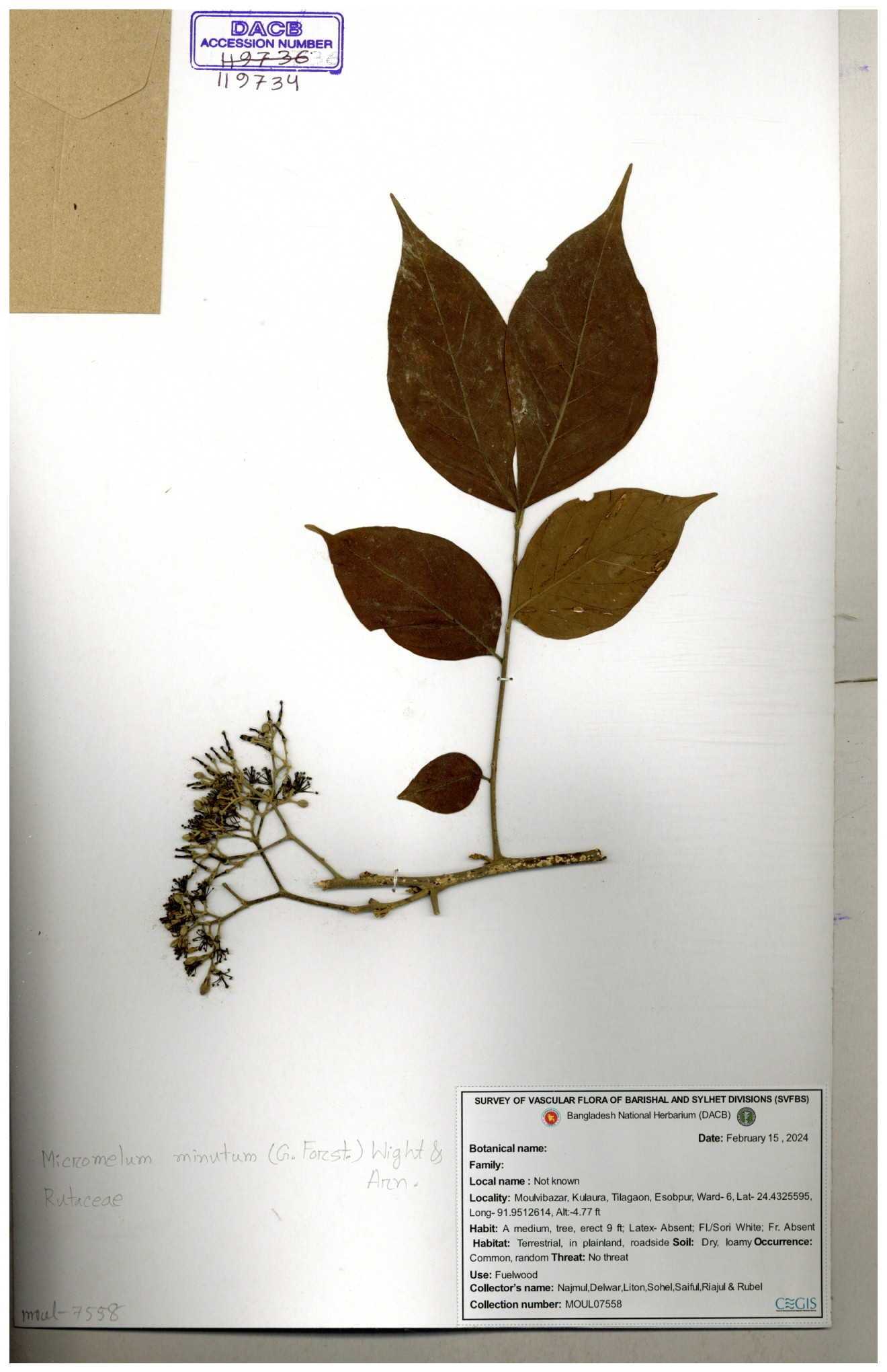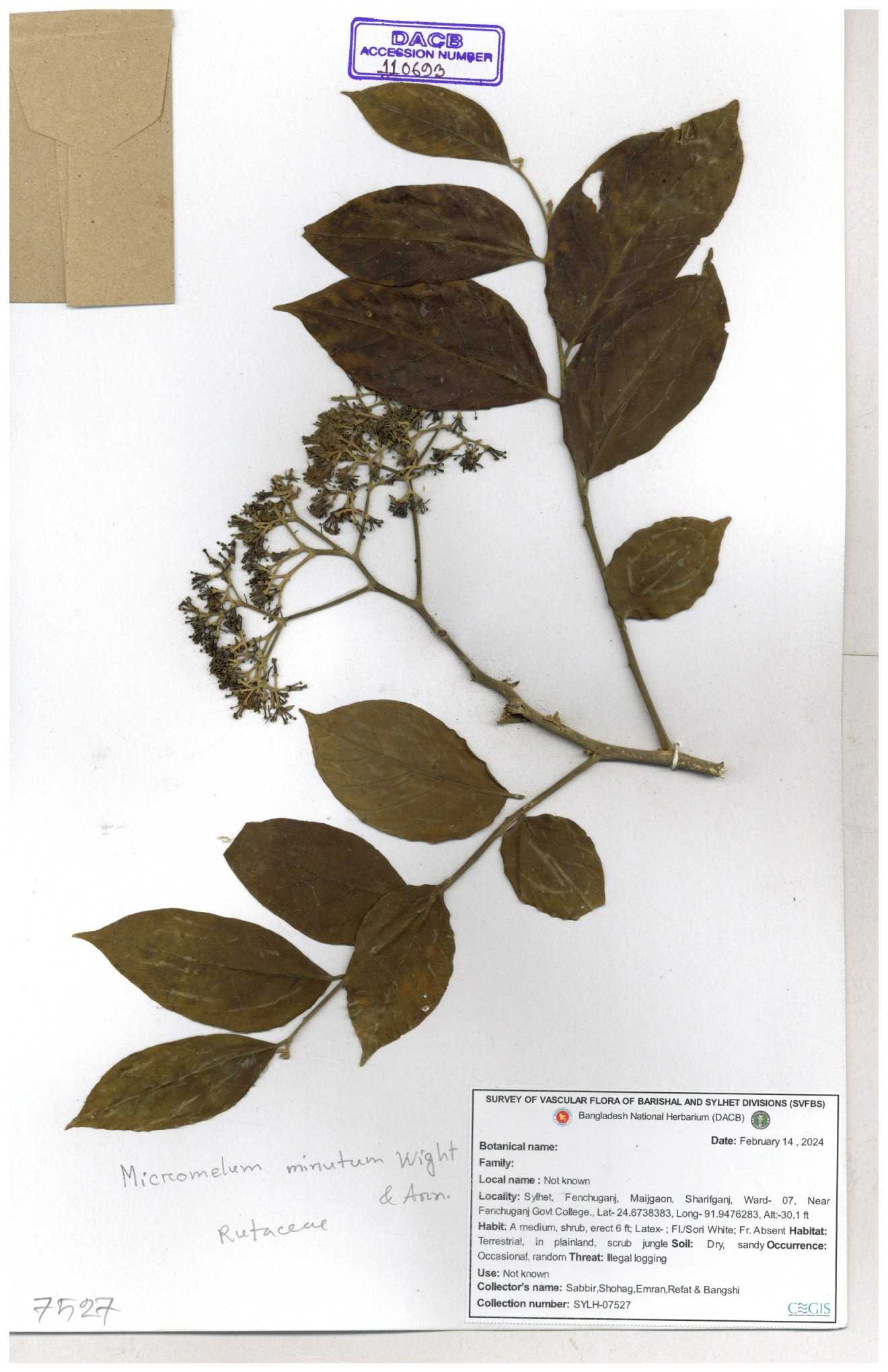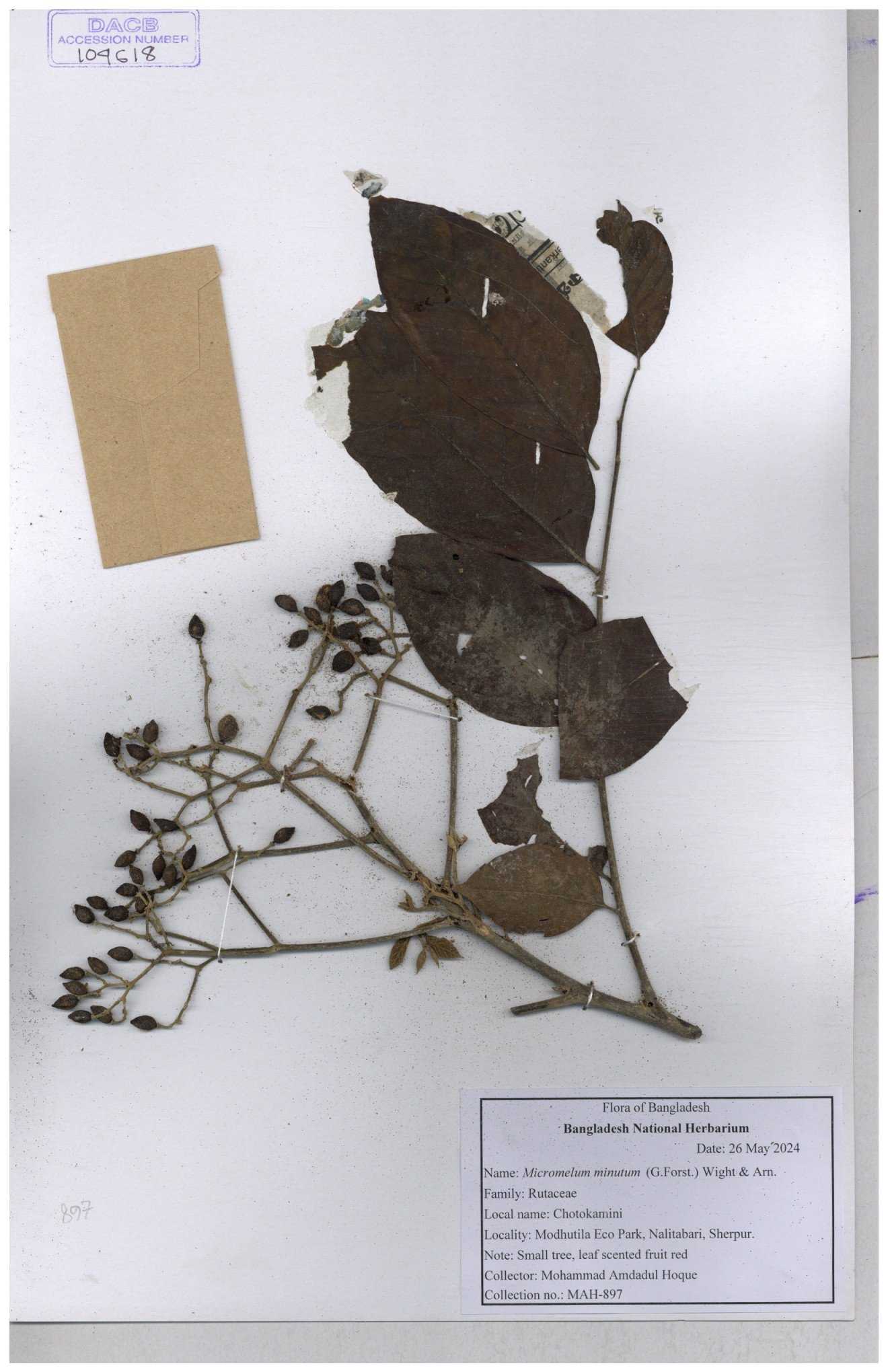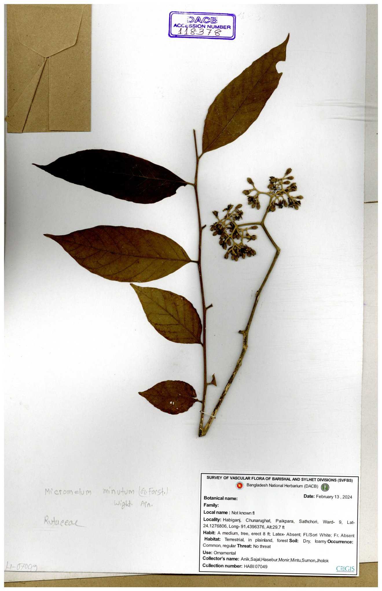 | 60533 | Rutaceae | Micromelum minutum Wight & Arn. | Niyamul Kabir, Zahid Hasan, Mehedi Hasan | NK-6656 18-12-2017 |