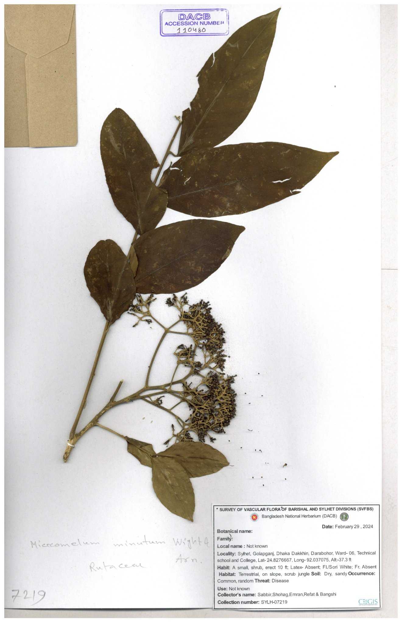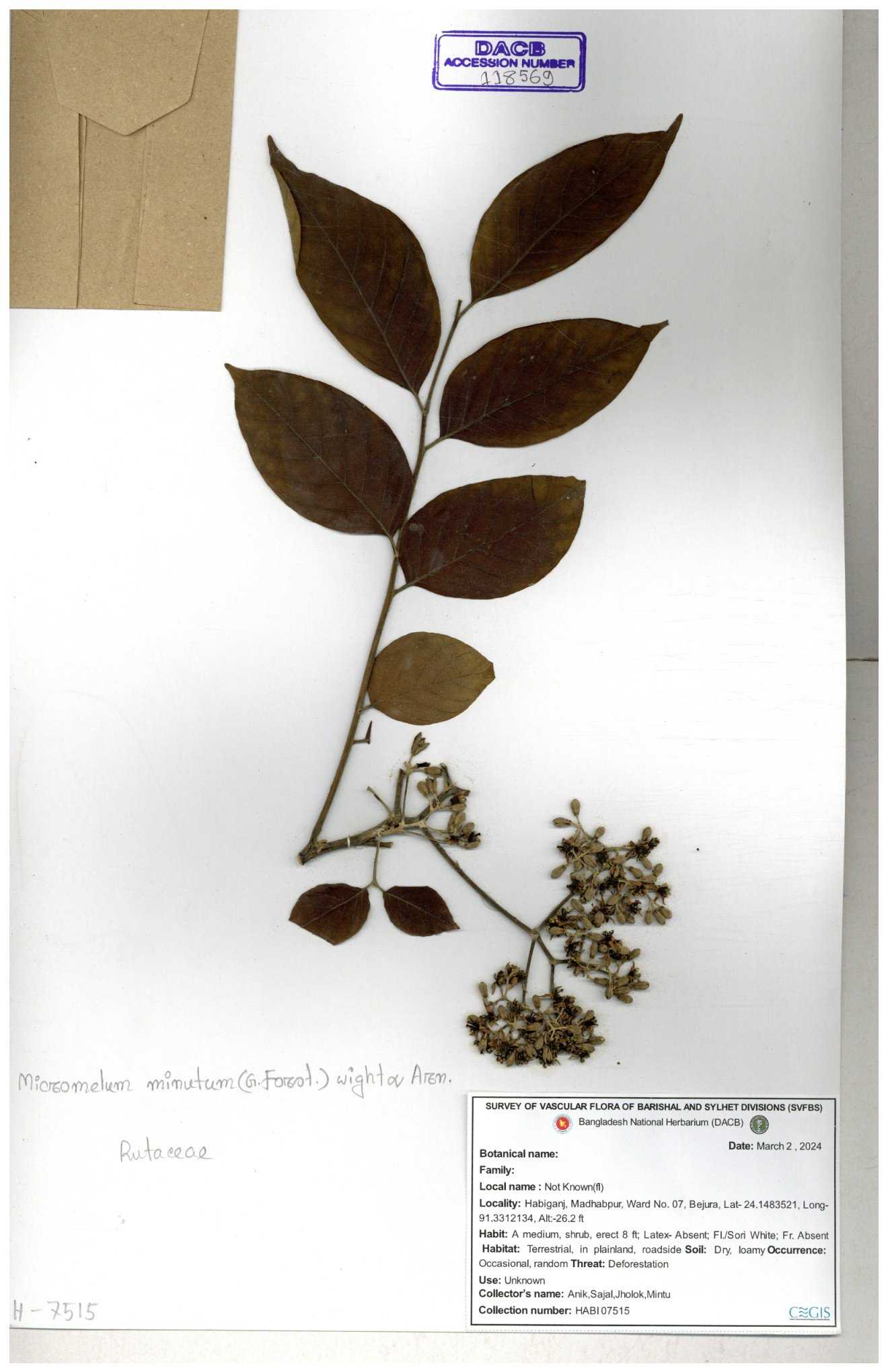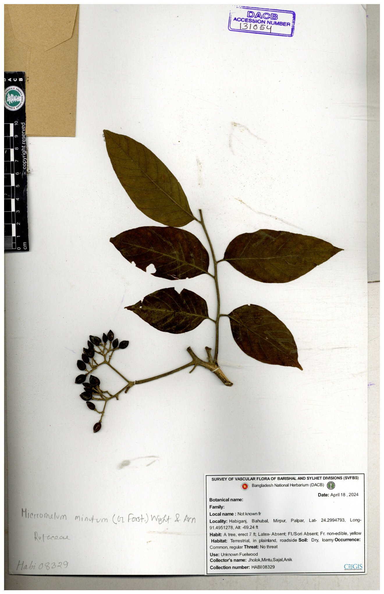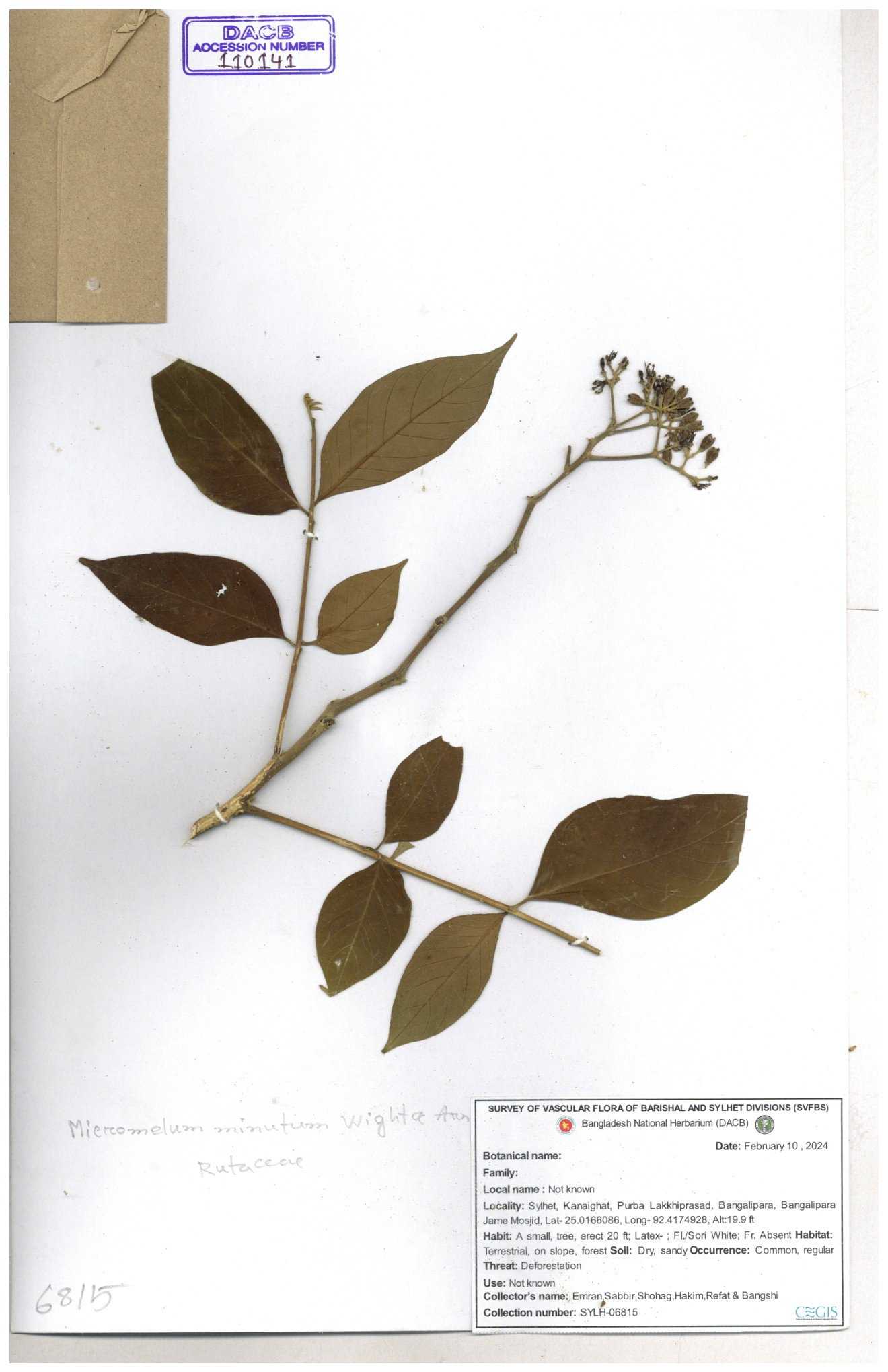 | 60533 | Rutaceae | Micromelum minutum Wight & Arn. | Niyamul Kabir, Zahid Hasan, Mehedi Hasan | NK-6656 18-12-2017 |