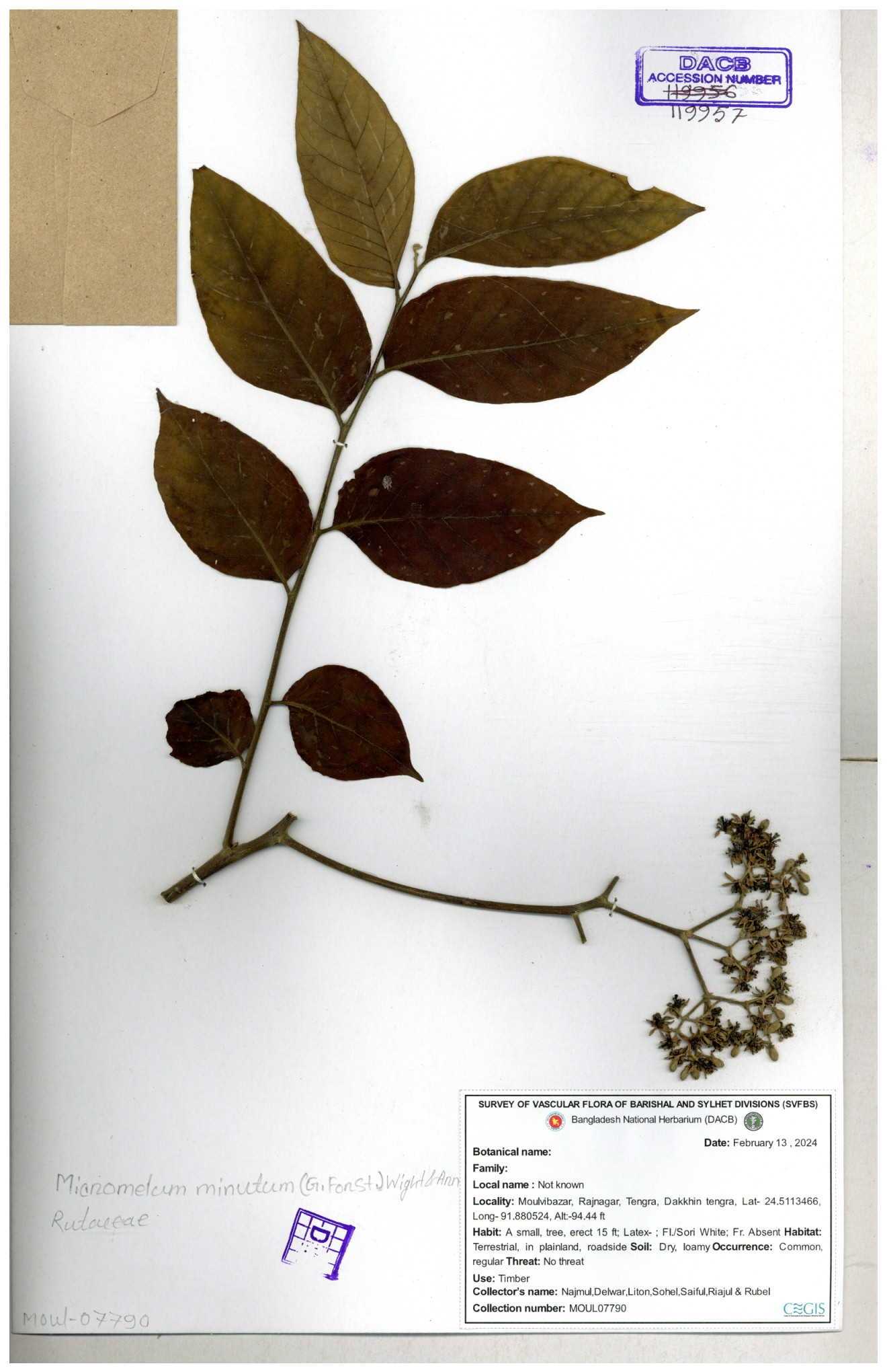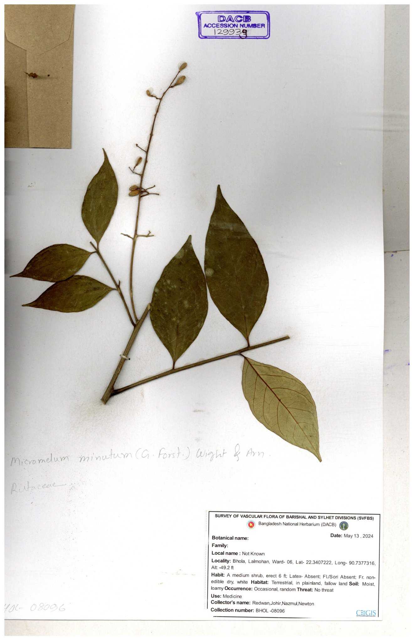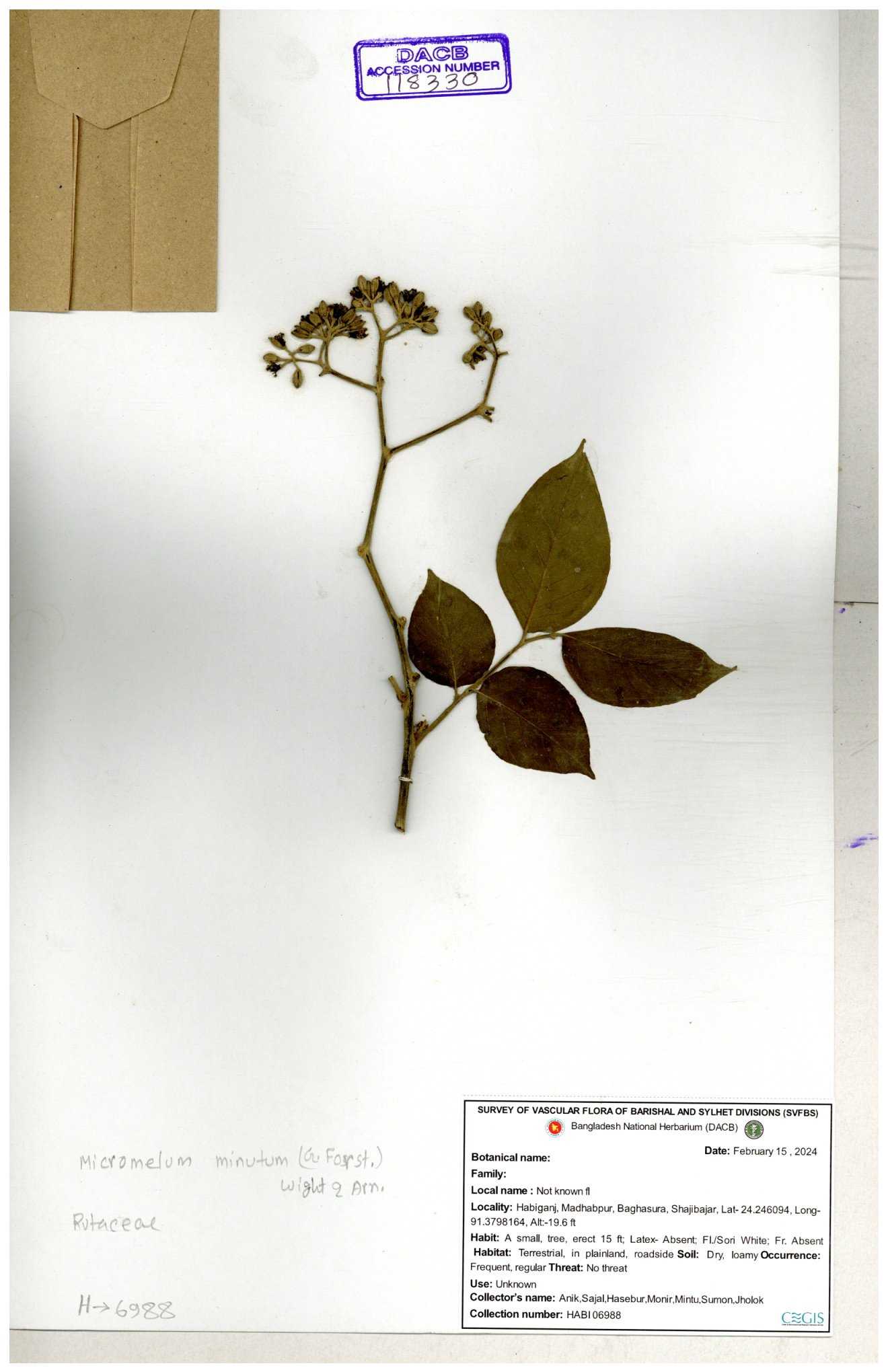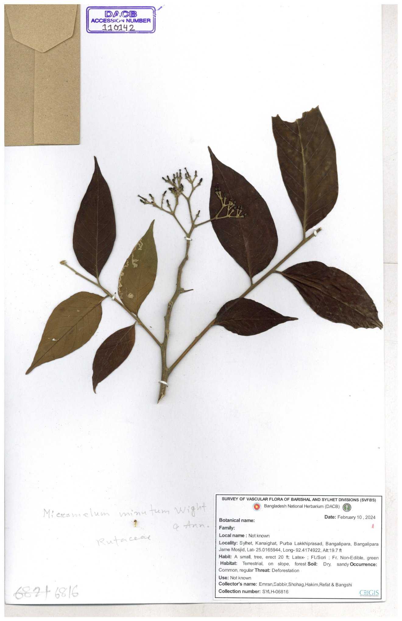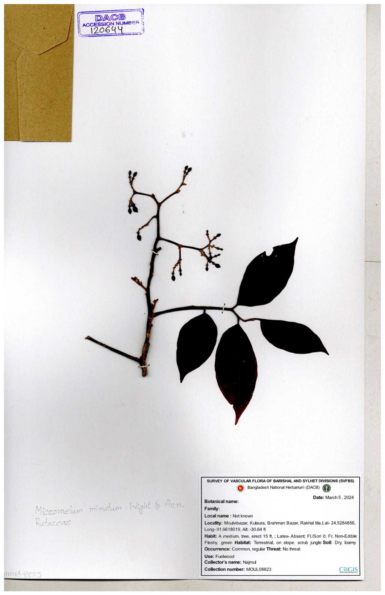 | 60533 | Rutaceae | Micromelum minutum Wight & Arn. | Niyamul Kabir, Zahid Hasan, Mehedi Hasan | NK-6656 18-12-2017 |
