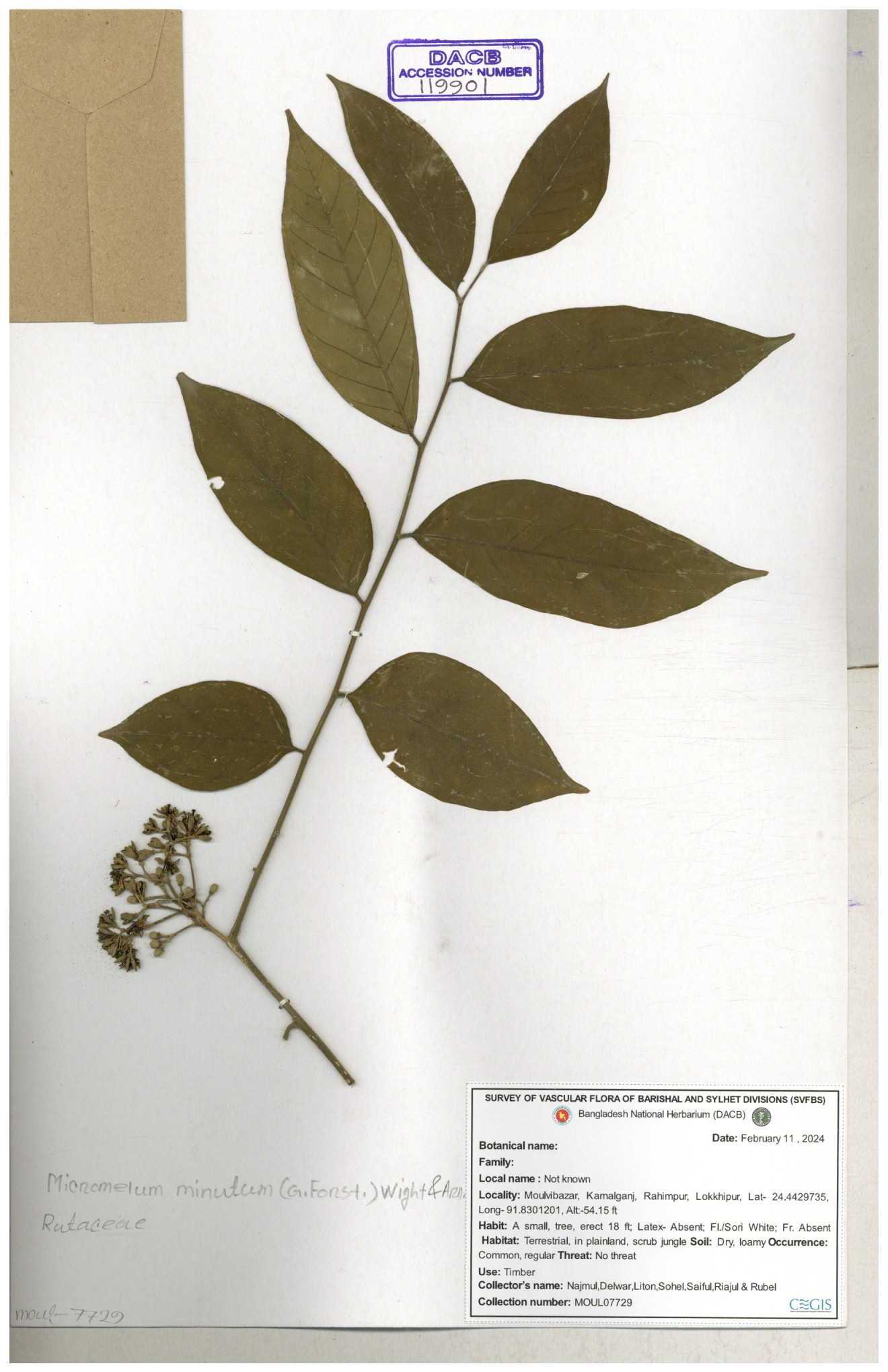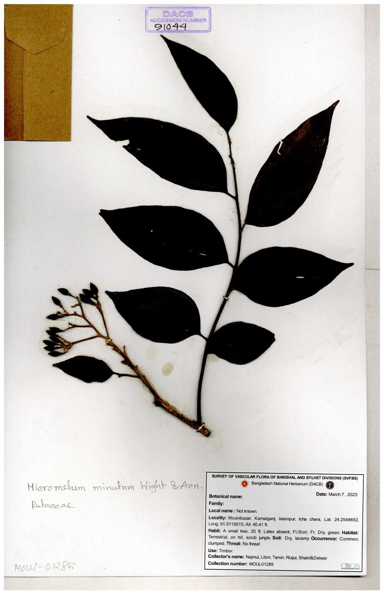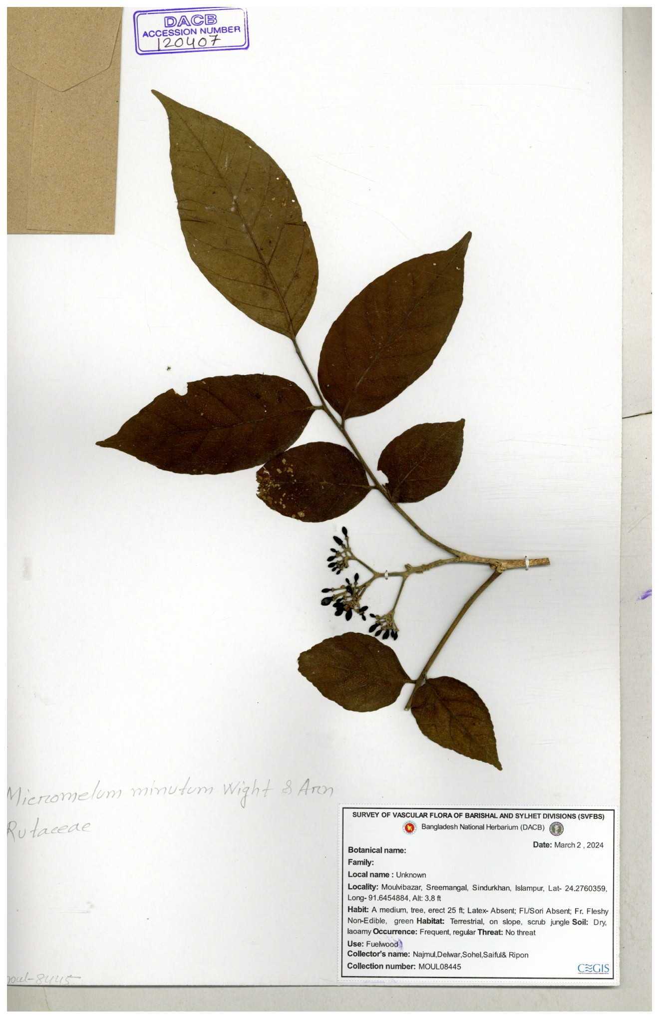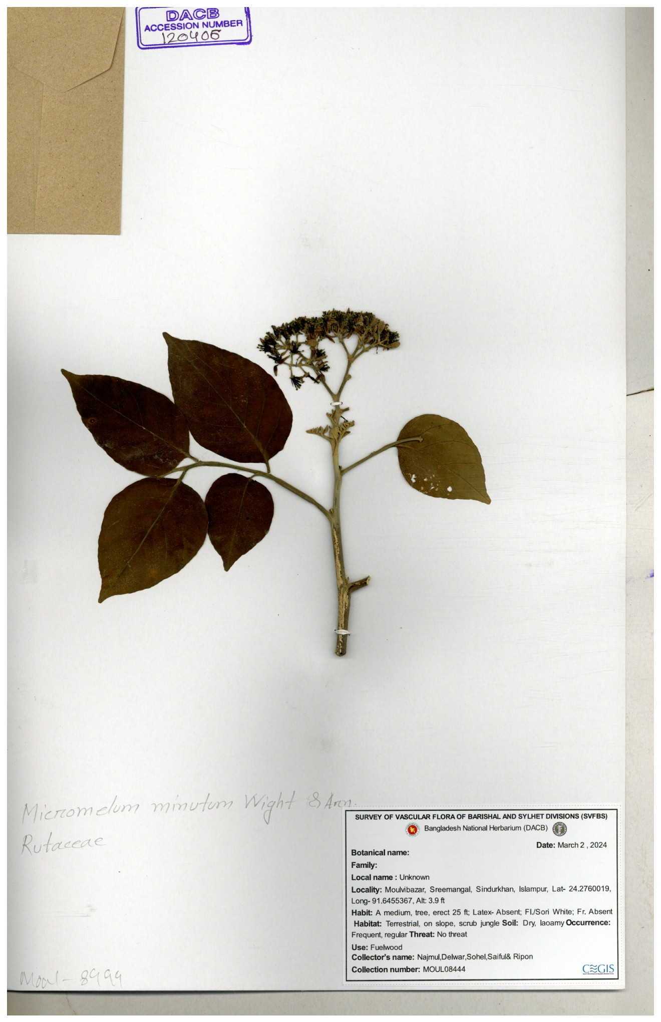 | 60533 | Rutaceae | Micromelum minutum Wight & Arn. | Niyamul Kabir, Zahid Hasan, Mehedi Hasan | NK-6656 18-12-2017 |